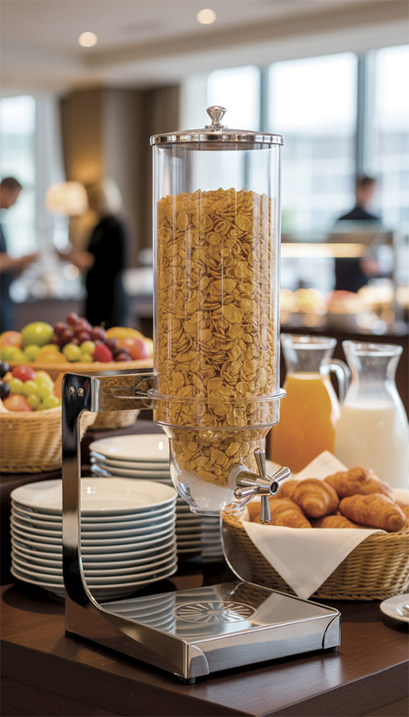 Convient pour céréales, riz, légumineuses, café, fruits secs et autres aliments secs. Recommandé pour hôtels, cafétérias, magasins vrac, buffets et collectivités.