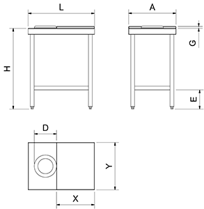 L (mm) | A (mm) | H (mm) | E (mm) | G1 (mm) | Tabellentyp | x (mm) | y (mm) | Anzahl der niedrigen Regale | Kg | Referenz | Lager | Preis | Menge | Aktion |
