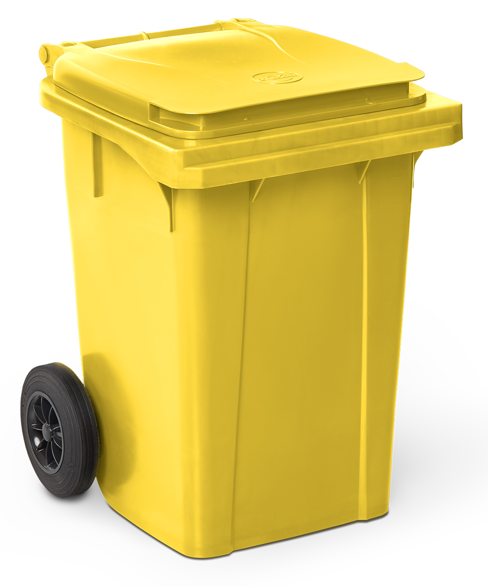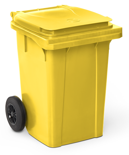 Müllcontainer mit Deckel und Rädern, dunkelgelb, 60 Liter.