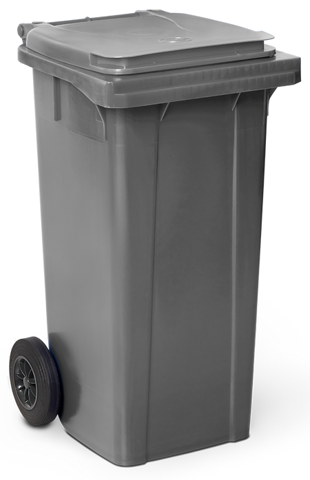 Mülleimer mit Deckel und Rollen in Grau, 120 l.