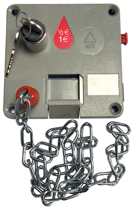 Ideal für Supermärkte, Einkaufszentren und andere Einrichtungen, die eine effiziente Verwaltung der Einkaufswagen benötigen. Dieses Schloss mit Kette hilft, Ordnung in den Wagenparkbereichen zu halten und ermutigt die Kunden, die Einkaufswagen nach Gebrauch zurückzubringen.