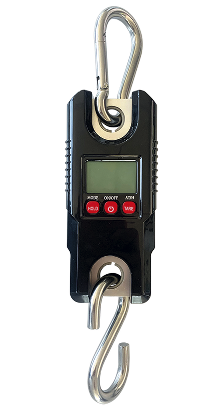 This digital weighing hook with a capacity of 300 kg is designed for industrial and commercial applications requiring precise and reliable measurement. Thanks to its backlit LCD screen and advanced features, it allows for quick and efficient weighing of suspended loads.