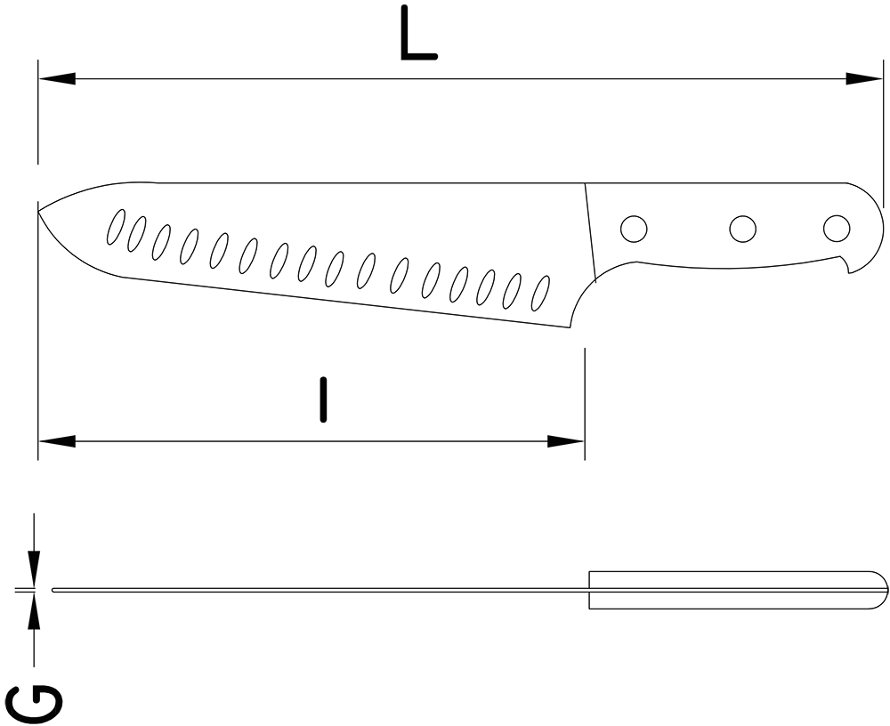 Thanks to its hollows, this knife prevents food from sticking to the blade, thus facilitating faster and more efficient cutting. Its injected handle ensures excellent comfort and increased durability.