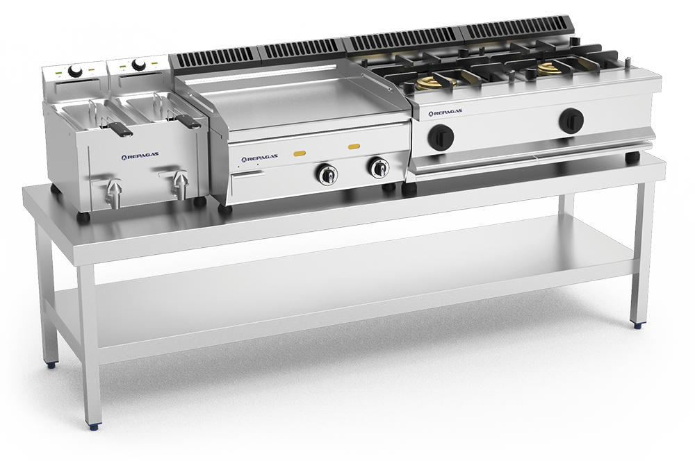 This central stainless steel table is designed for demanding professional use, combining durability, hygiene, and robustness. It is ideal for food environments requiring a reliable and resistant work surface.