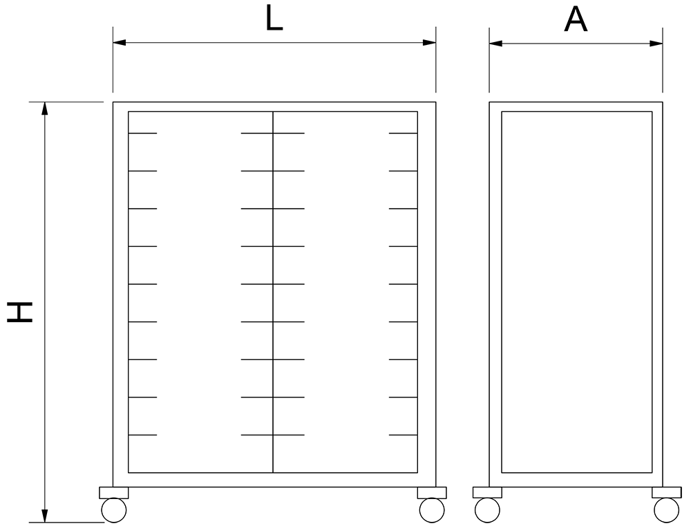 | L (mm) | A (mm) | H (mm) | Number of compartments | Kg | Reference | Stock | Price | Quantity | Action |