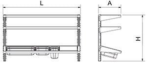 | L (mm) | A (mm) | H (mm) | Number of levels | Kg | Reference | Stock | Price | Quantity | Action |