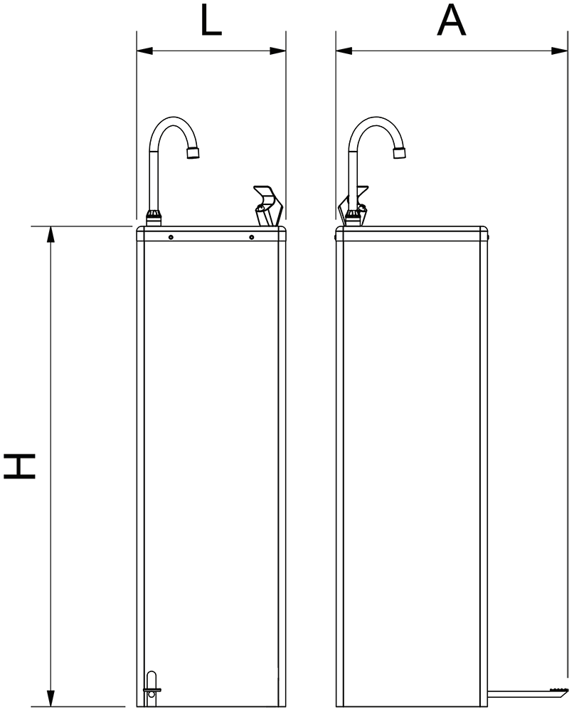 Cold+ refrigerated cold water fountains with foot-operated filling tap