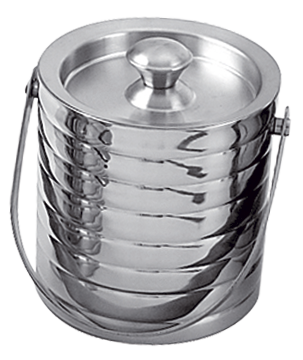 Stainless steel ice bucket with lid, ideal for keeping ice cubes fresh longer and facilitating service.