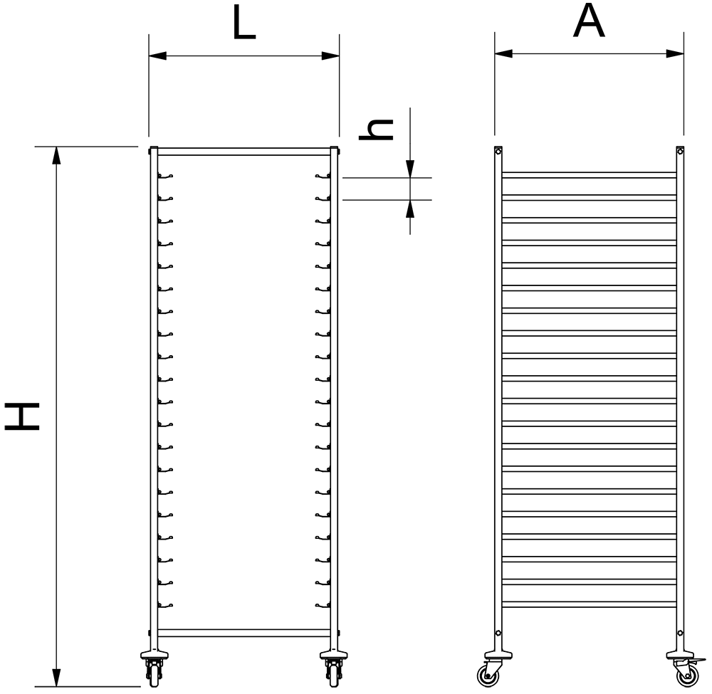 Made of stainless steel, this 20 -level tray cart has been designed to meet all customer needs, it is the most versatile cart to date.
