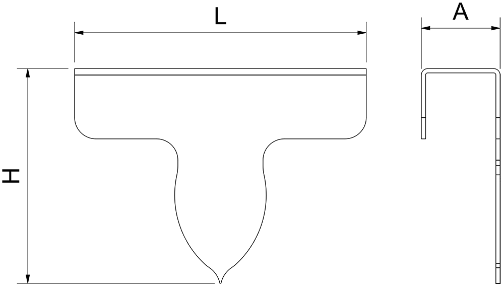 | L (mm) | A (mm) | H (mm) | Kg | Reference | Stock | Price | Quantity | Action |