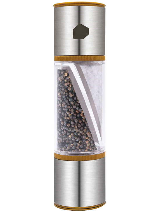- Stainless steel body and transparent reservoir for easy monitoring of spice levels.