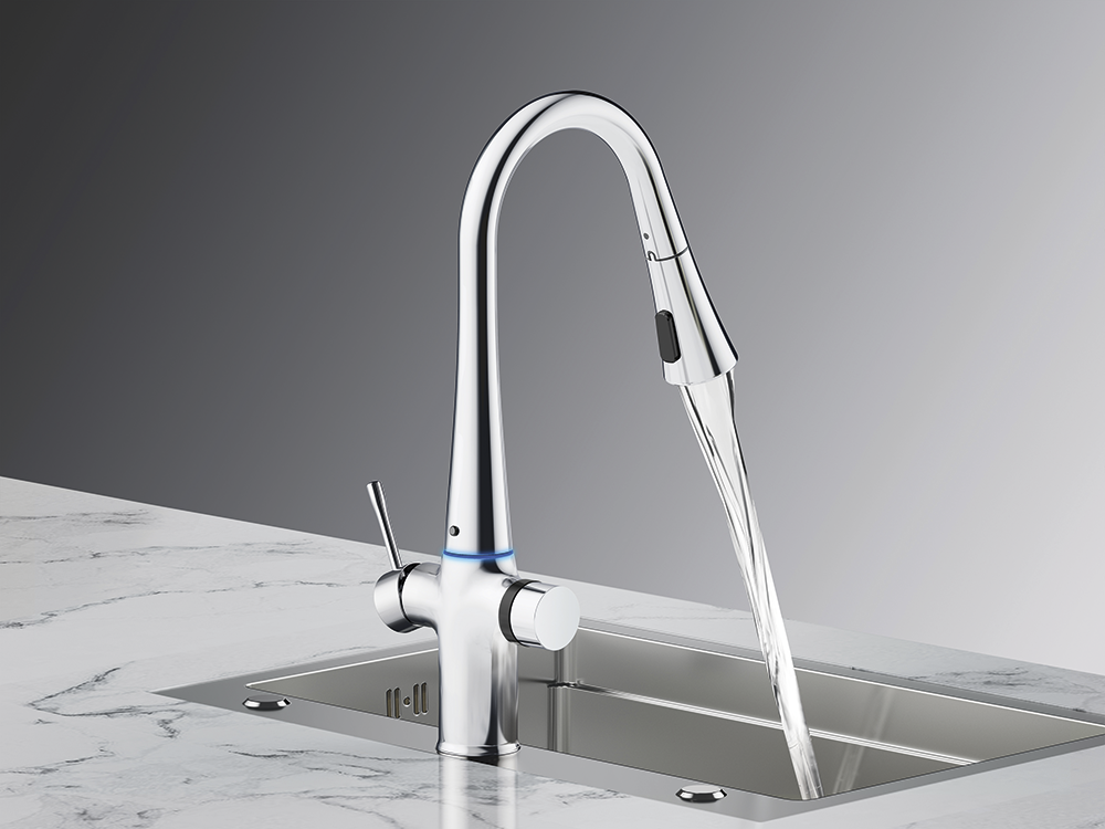 This innovative kitchen faucet incorporates all the functions that one would expect from different kitchen faucets.