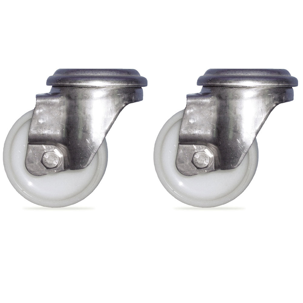 The set of 2 AISI 304 stainless steel wheels with nylon bearing is designed for professional use in demanding environments. Suitable for humid atmospheres and outdoor use, these wheels ensure smooth mobility and high resistance.