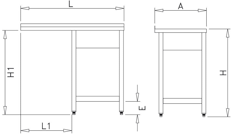 L (mm) | A (mm) | H (mm) | a (mm) | E (mm) | Depth or height (mm) | H1 (mm) | l (mm) | L1 (mm) | Kg | Reference | Stock | Price | Quantity | Action |