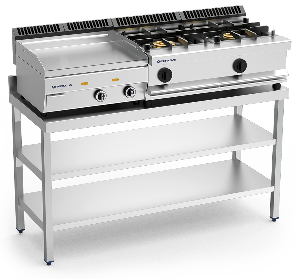 Made entirely of high-quality stainless steel with a soundproofed and reinforced top of 1.5 mm thickness. The lower shelf, if selected, is made of reinforced stainless steel with a thickness of 0.8 mm.