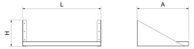 | L (mm) | A (mm) | H (mm) | Kg | Reference | Stock | Price | Quantity | Action |