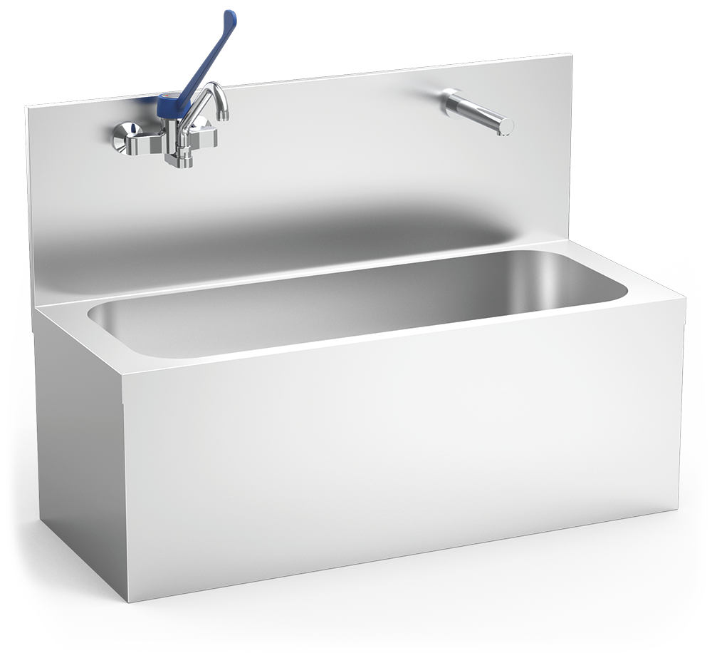 Made of stainless steel, this sink is specially designed for operating blocks.
