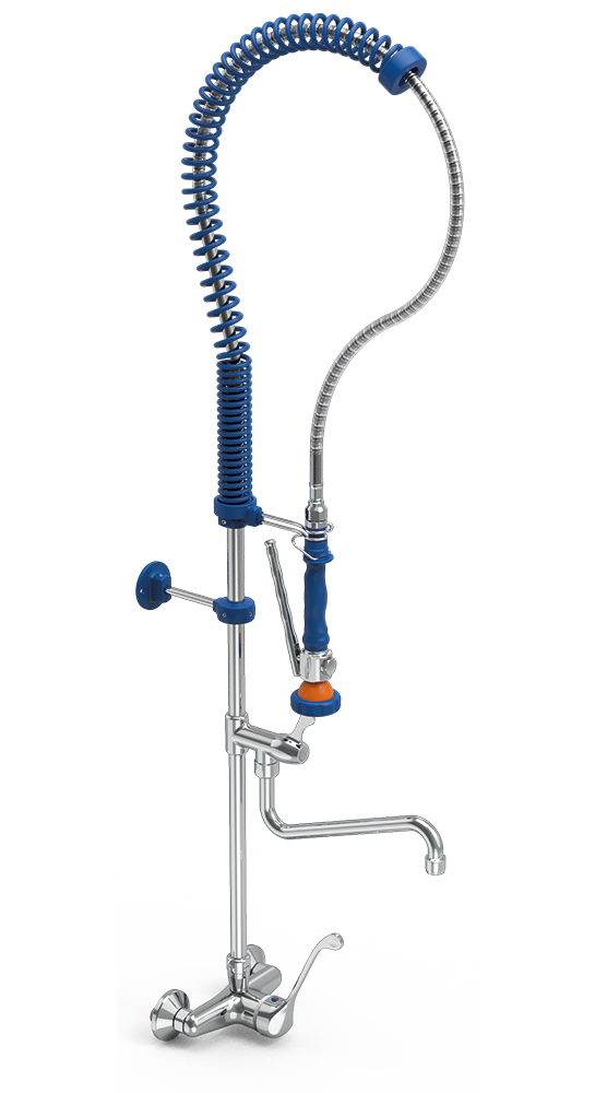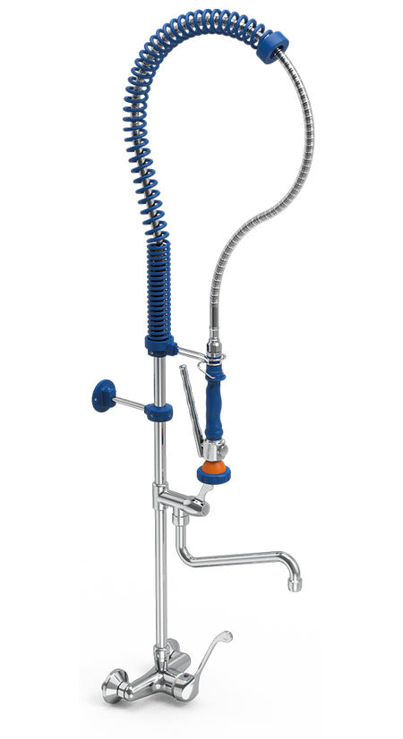 Pre-rinse spray tap wall-mounted + mixer tap + gooseneck.