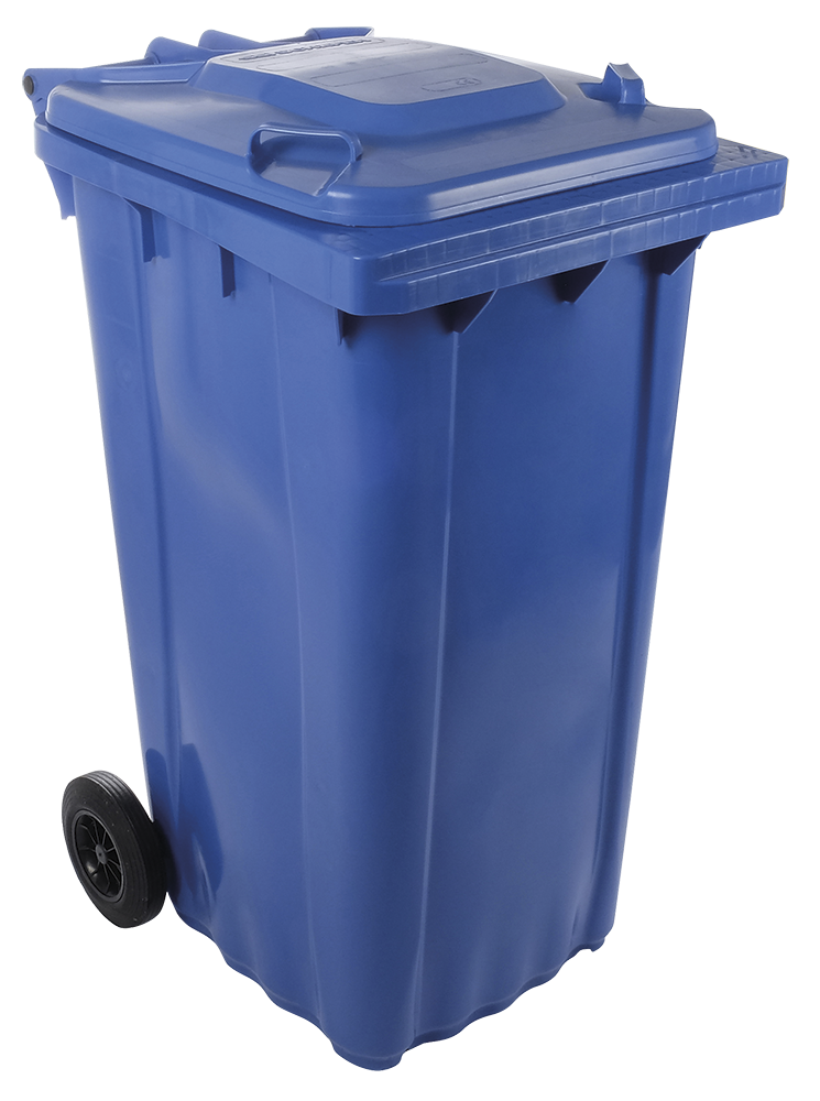 Contenitore per rifiuti con coperchio e ruote dim blu 240 lt.