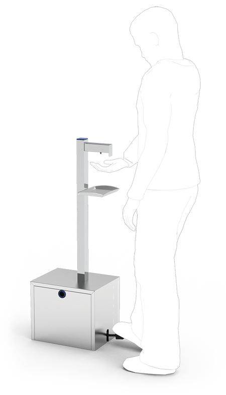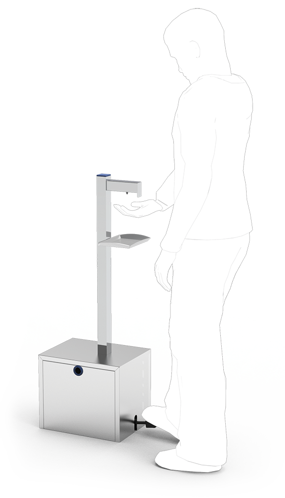 - Igiene rinforzata: Il sistema a pedale elimina il contatto delle mani con il distributore, riducendo così i rischi di diffusione dei germi.