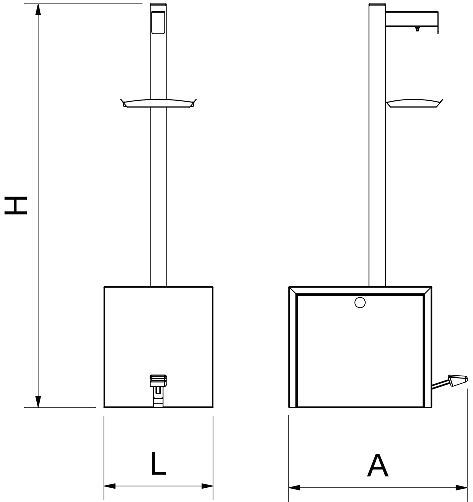 - Alta capacità: Progettato per contenere serbatoi di gel idroalcolico di grande capacità, minimizzando la frequenza di riempimento e assicurando una disponibilità continua del prodotto disinfettante.