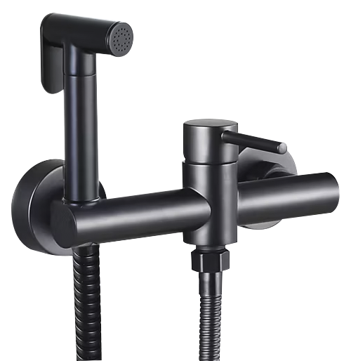 Gamma di rubinetteria per bagno dal design cilindrico e finitura nera opaca, progettata per spazi contemporanei che uniscono eleganza e funzionalità.