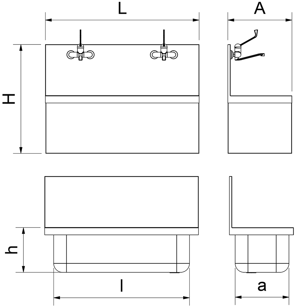 Realizzato in acciaio inossidabile, questo lavandino è appositamente progettato per le sale operatorie. Adatto per due utenti simultanei, in quanto comprende 2 rubinetti a parete elettronici 460808. La sua attivazione tramite sensore di prossimità favorisce il lavaggio delle mani senza contatto, evitando così la contaminazione incrociata.