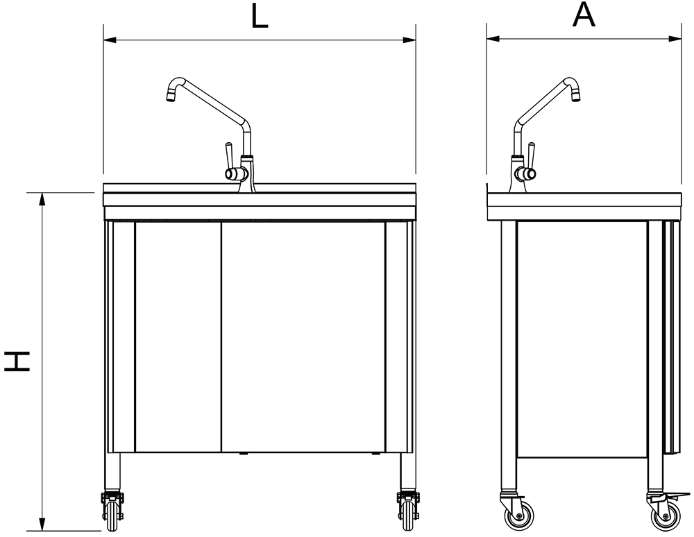 Questo lavello inox autonomo è una soluzione pratica e funzionale per gli ambienti professionali che richiedono un'attrezzatura mobile e autonoma. Non richiedendo collegamenti idrici o di drenaggio, è ideale per un uso flessibile in diversi spazi.