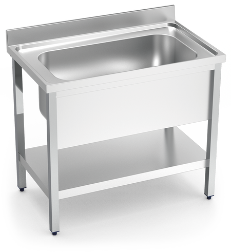 Lavello in acciaio inox su piede con ripiano sotto serie 600 1 vasca grande capacità rivestimento completo