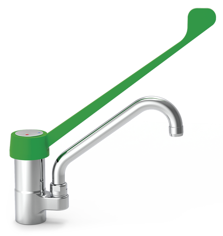Questo miscelatore professionale è progettato per massimizzare l'igiene e ottimizzare il consumo energetico. Grazie al suo sistema di azionamento a gomito, consente un utilizzo senza contatto diretto con le mani, ideale per gli ambienti dove l'igiene è una priorità. Il suo design intelligente contribuisce anche al risparmio energetico: in posizione centrale, la maniglia eroga solo acqua fredda. Per attivare l'acqua calda, è necessario spostarla verso sinistra, limitando così l'uso inutile dello scaldabagno o della caldaia. Questo sistema permette una gestione più efficiente del consumo di energia e acqua, rendendo questo miscelatore sia performante che durevole.Caratteristiche principali