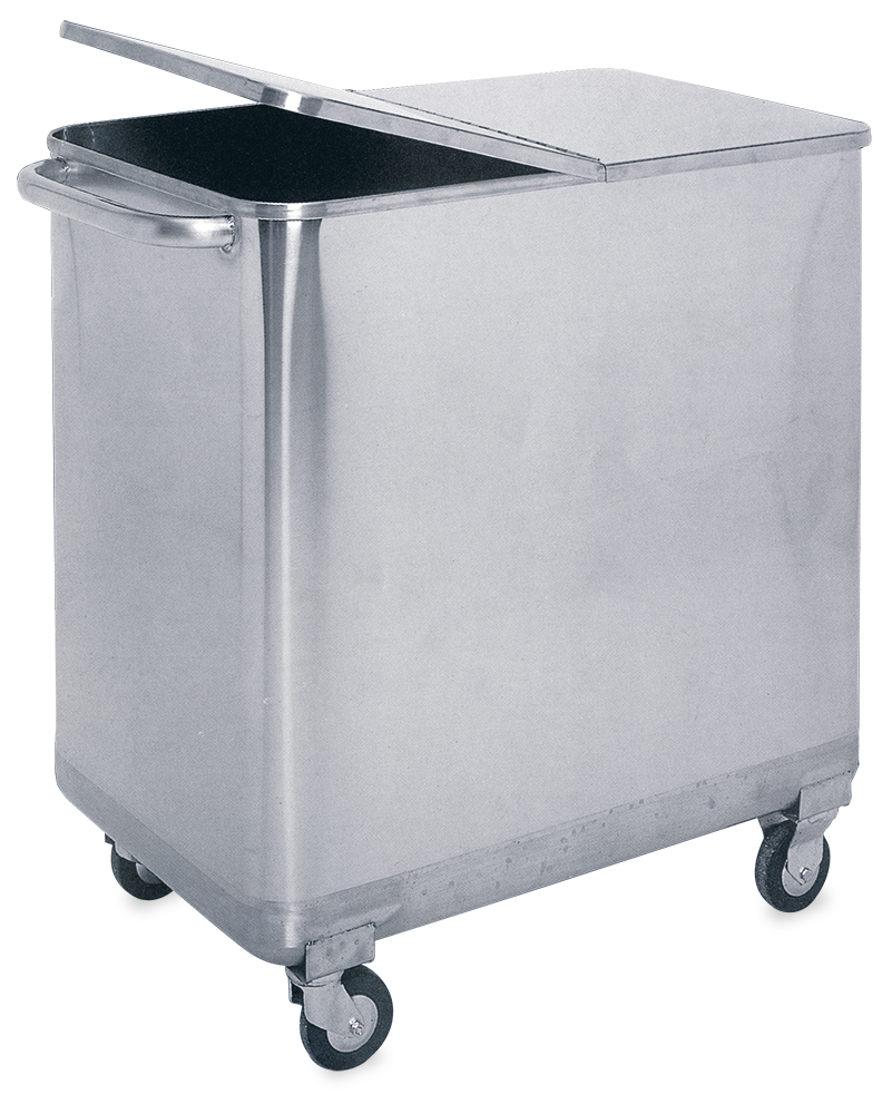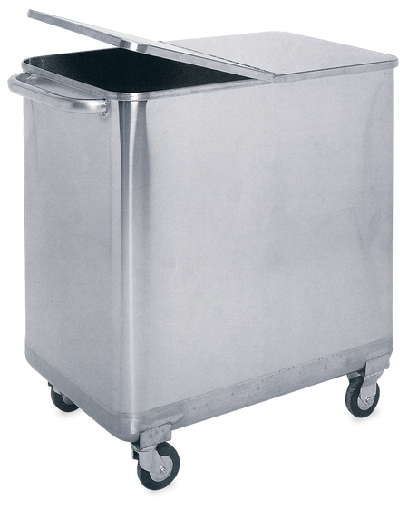 Bidone in acciaio inox con coperchio e ruote. Speciale panetteria.