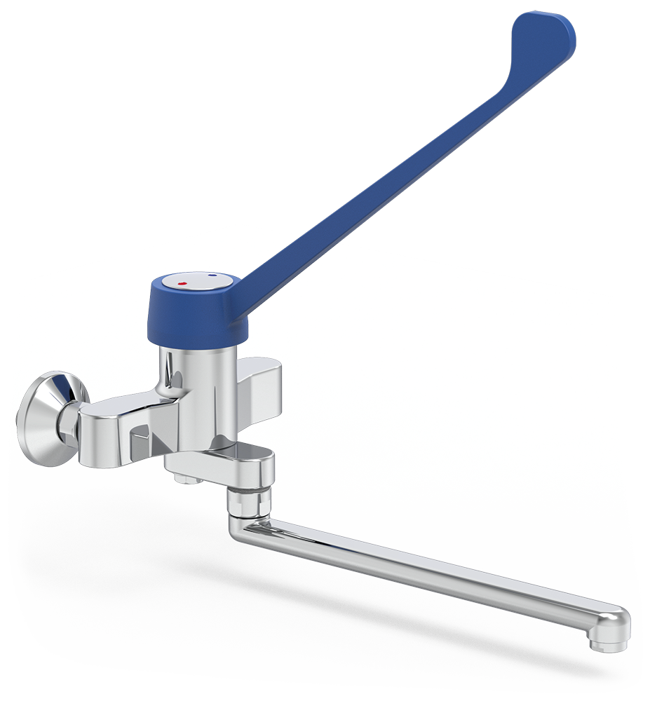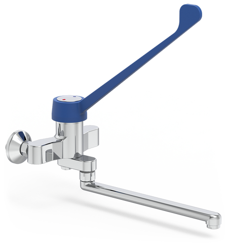 Rubinetto a parete a doppio ingresso azionamento a gomito collo di cigno basso Serie Monoblock