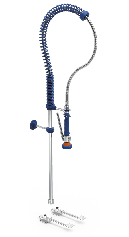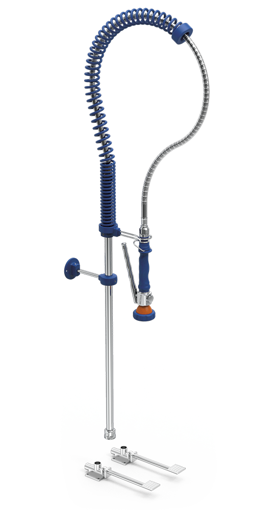 Rubinetto doccia della serie Basic con doppio pedale per attivare l'acqua calda o fredda.