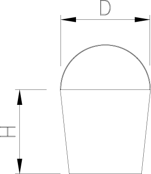 | H (mm) | Capacità (l) | D (mm) | Kg | Riferimento | Stock | Prezzo | Quantità | Azione |