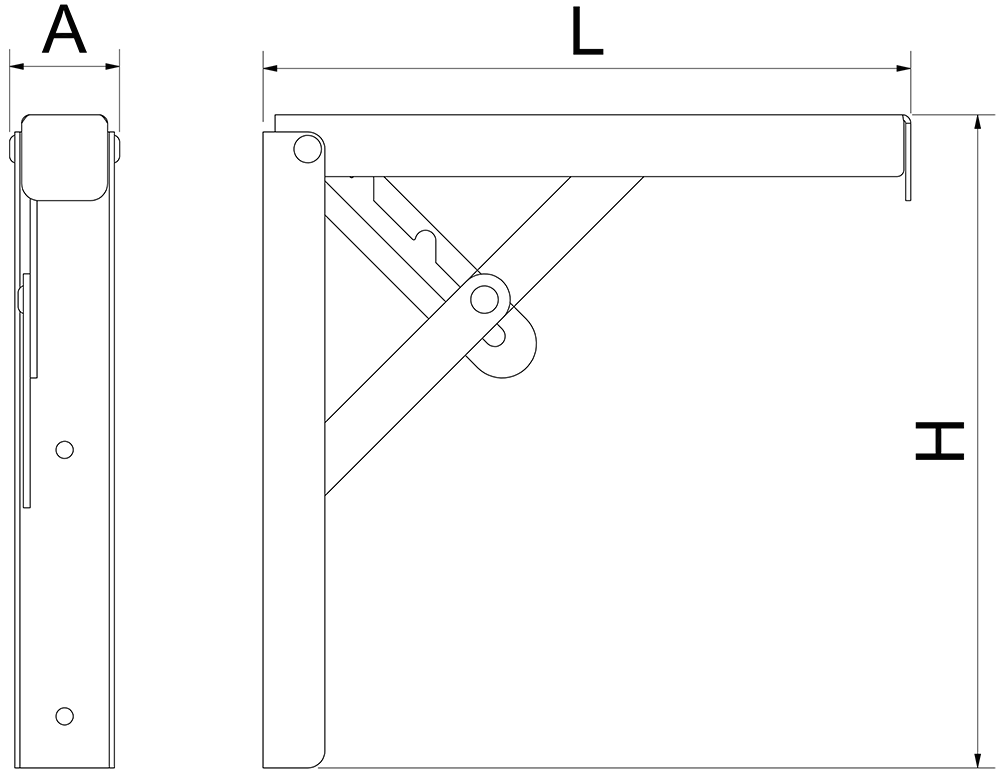 - Meccanismo pieghevole che consente di ripiegare la mensola quando non è in uso.
