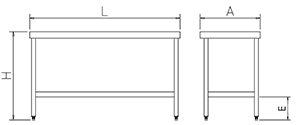 | L (mm) | A (mm) | H (mm) | E (mm) | Tipo di tabella | Numero di ripiani bassi | Kg | Riferimento | Stock | Prezzo | Quantità | Azione |