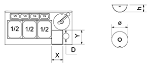 | L (mm) | A (mm) | H (mm) | D (mm) | E (mm) | Profondità o altezza (mm) | x (mm) | y (mm) | Kg | Riferimento | Stock | Prezzo | Quantità | Azione |