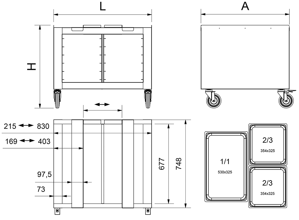 | L (mm) | A (mm) | H (mm) | Kg | Riferimento | Stock | Prezzo | Quantità | Azione |