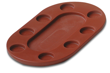 Salsera ovale en fibre de polyéthylène conçue pour servir jusqu'à huit sauces différentes. Idéale pour la restauration et les buffets, elle permet une présentation élégante et pratique.