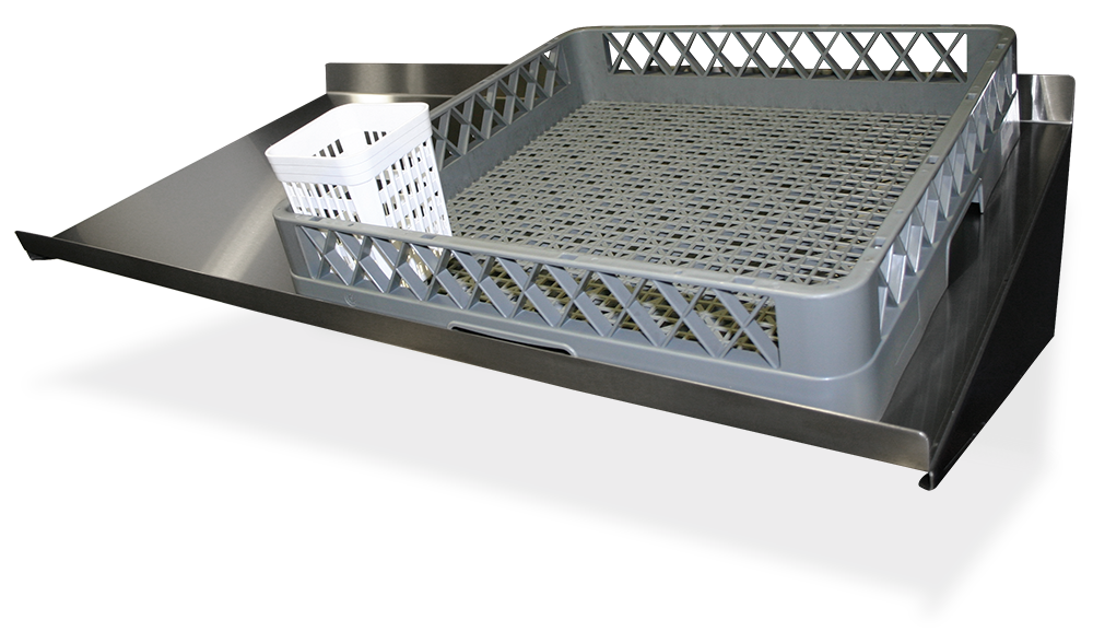 Étagère inox murale inclinée pour panier de lave-vaisselle