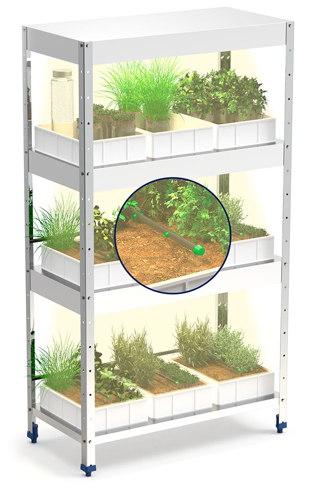 Support pour agriculture urbaine conçu pour fournir un environnement optimal pour la croissance des plantes à l'intérieur.