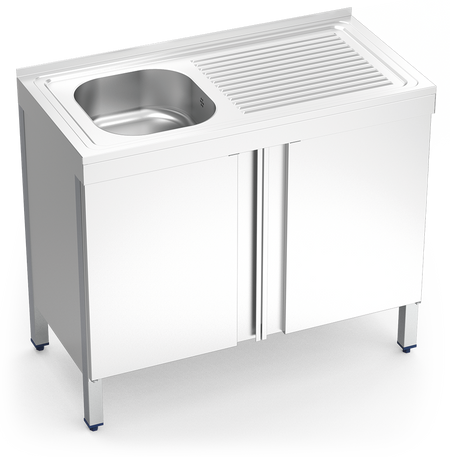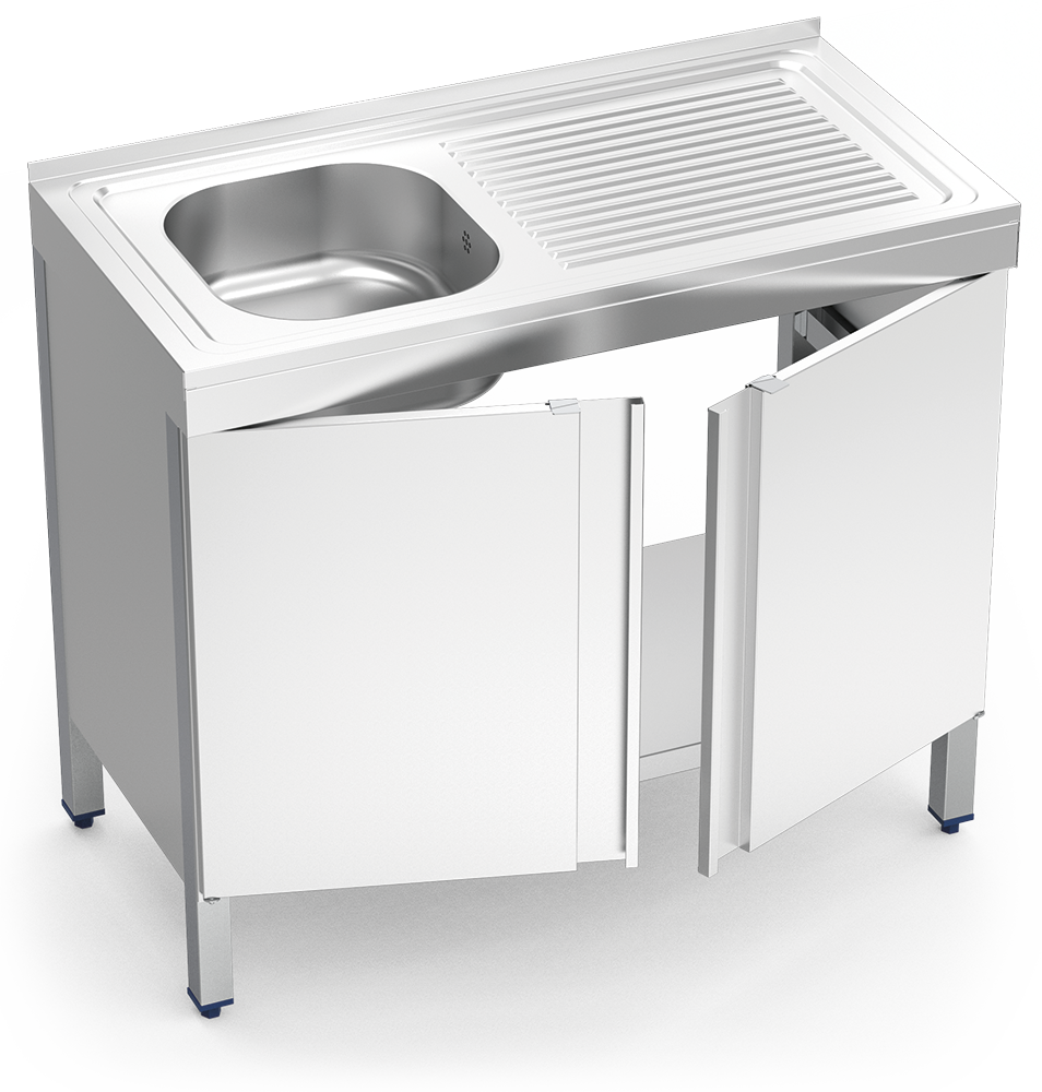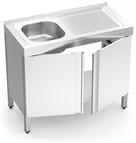 Plonge inox avec portes battantes série 500 1 bac 1 égouttoir à droite