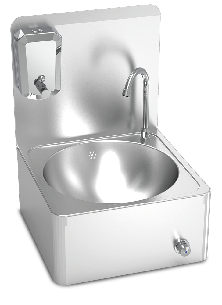 Lave mains inox mural commande à génou avec coins arrondis