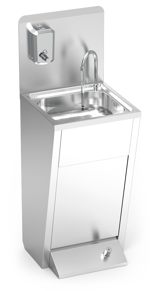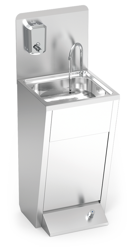 Ce lave-mains sur pied en acier inoxydable est conçu pour répondre aux exigences des environnements professionnels nécessitant une hygiène irréprochable. Équipé d'un dosseret et d'un distributeur de savon en inox intégrés, il garantit une utilisation pratique tout en respectant les normes sanitaires en vigueur.
