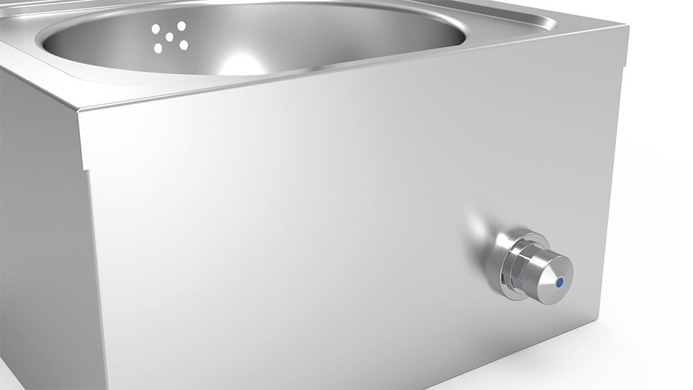 - Commande fémorale robuste et efficace avec un poussoir temporisé, assurant un fonctionnement non manuel pour une hygiène accrue.