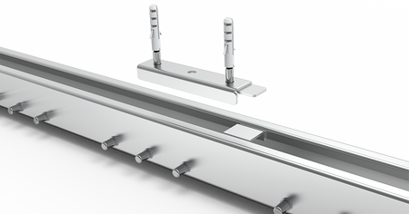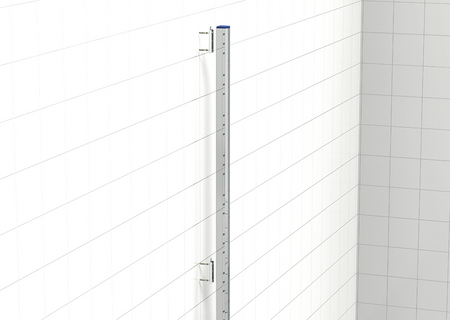 Notre système d'étagères en acier inoxydable réglables murales est équipé de notre montant vertical ajustable GN Ref. P013606. Cet élément permet une inclinaison des niveaux pour une meilleure organisation et une hauteur réglable pour s'adapter à vos besoins. Conçu pour offrir flexibilité et polyvalence dans votre espace de rangement.
