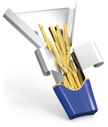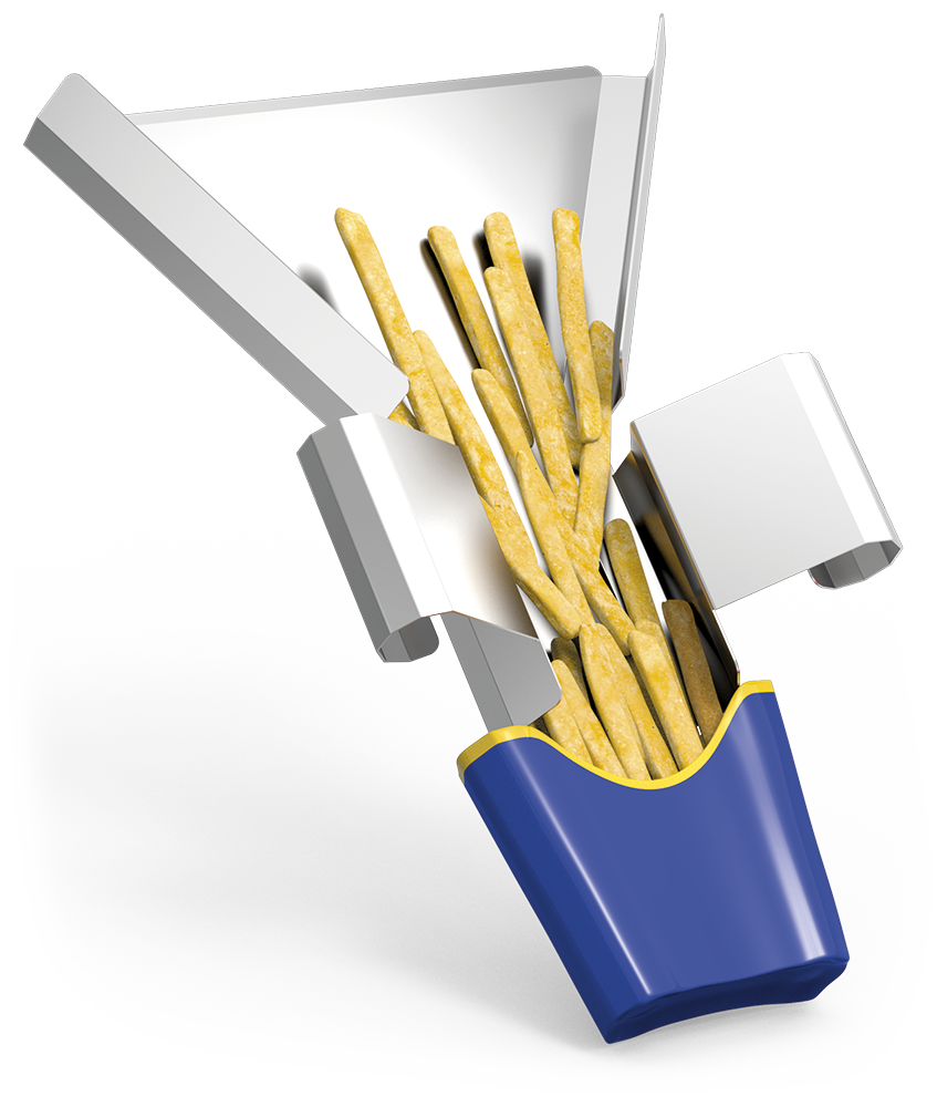- Forme spécialement conçue pour guider les frites directement dans le contenant sans gaspillage.