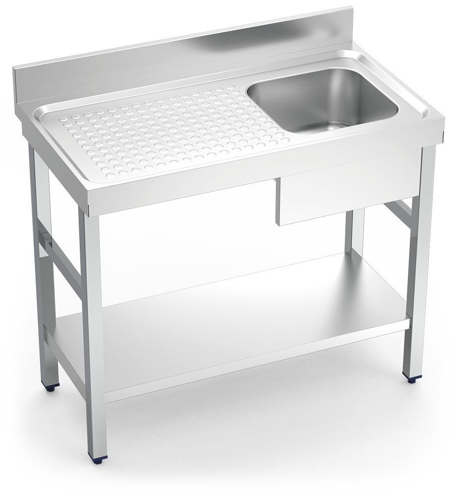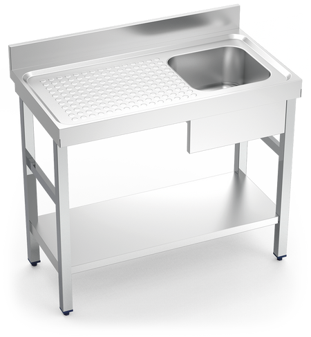 Plonge inox sur pieds avec étagère dessous série 550 1 bac 1 égouttoir gouche habillage partiel