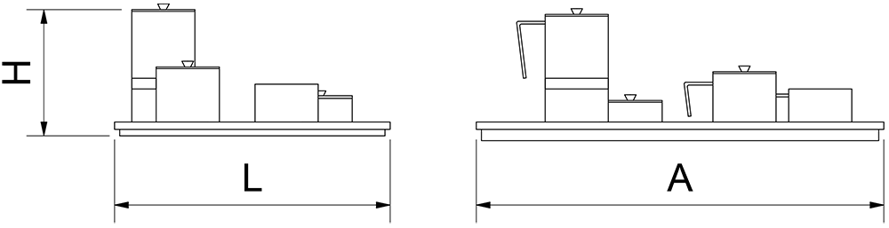 | L (mm) | A (mm) | H (mm) | Nombre de tasses de café | Kg | Référence | Stock | Prix | Quantité | Action |