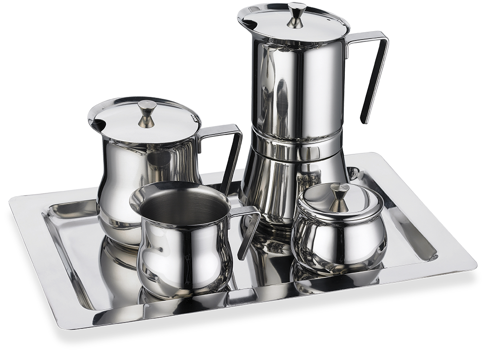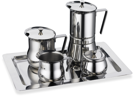 Ensemble à café 5 pièces en acier inoxydable, idéal pour un service élégant et raffiné du café. Convient pour 6 tasses.